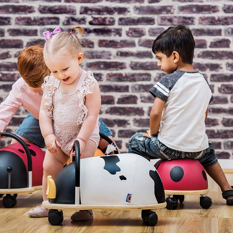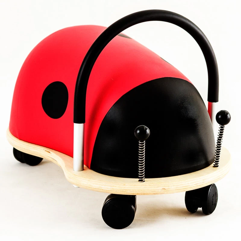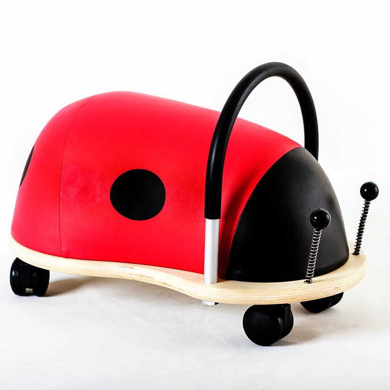The multi award winning Small Ladybug Wheely Bug moves in all directions on solid castors and promotes gross motor skills and balance. It has a padded sponge layer for maximum comfort. The tough layer of polyurethane leatheroid can be easily wiped clean, and the wooden base is made from plantation grown Poplar plywood and has safe, rounded edges.