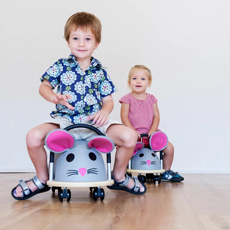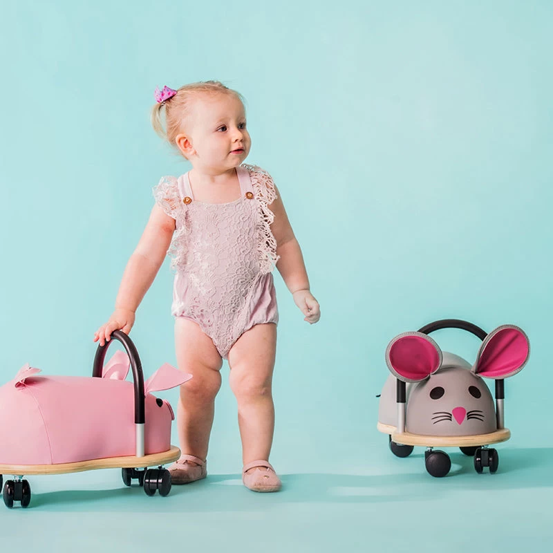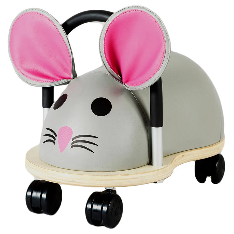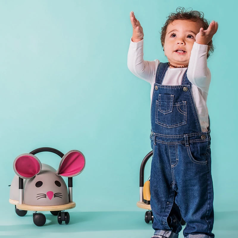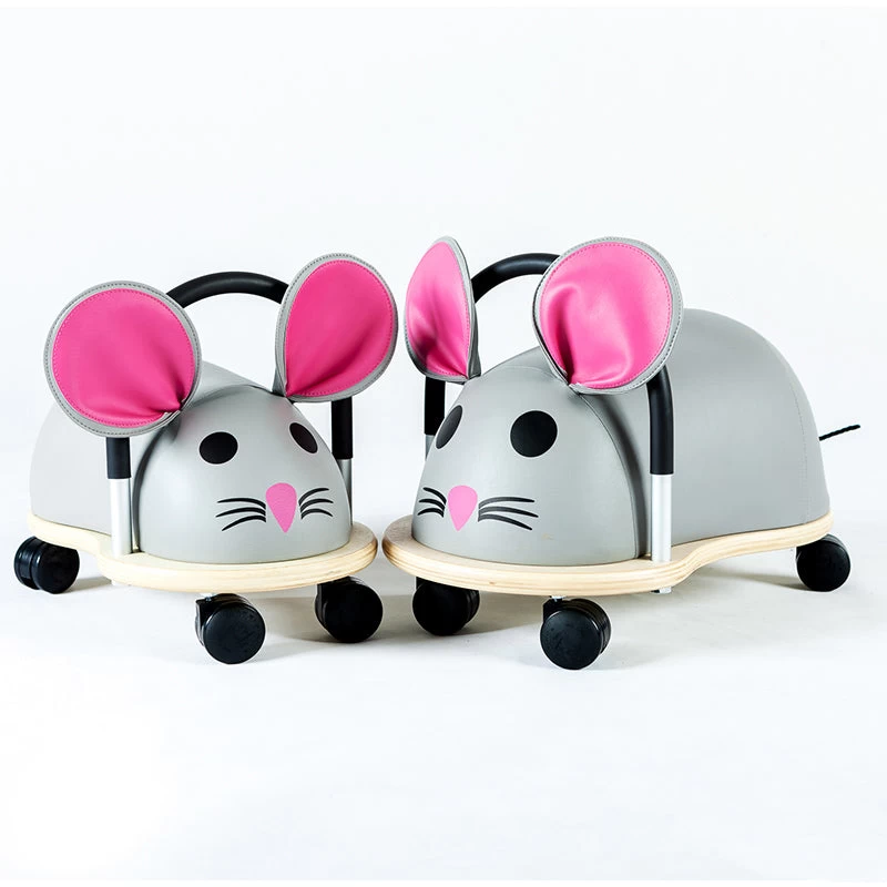 The multi award winning Small Mouse Wheely Bug moves in all directions on solid castors and promotes gross motor skills and balance. It has a padded sponge layer for maximum comfort. The tough layer of polyurethane leatheroid can be easily wiped clean, and the wooden base is made from plantation grown Poplar plywood and has safe, rounded edges.