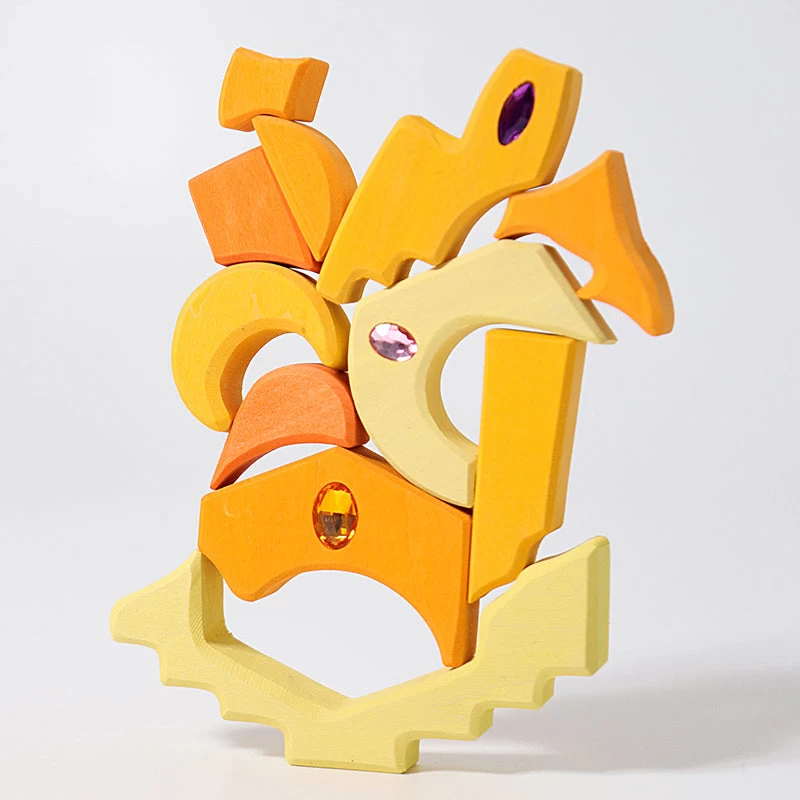 With mesmerising acrylic gems embedded into the wooden blocks, this Grimm’s Sparking Mandala Orient will dazzle. This Mandala has 52 wooden pieces that are orient inspired.