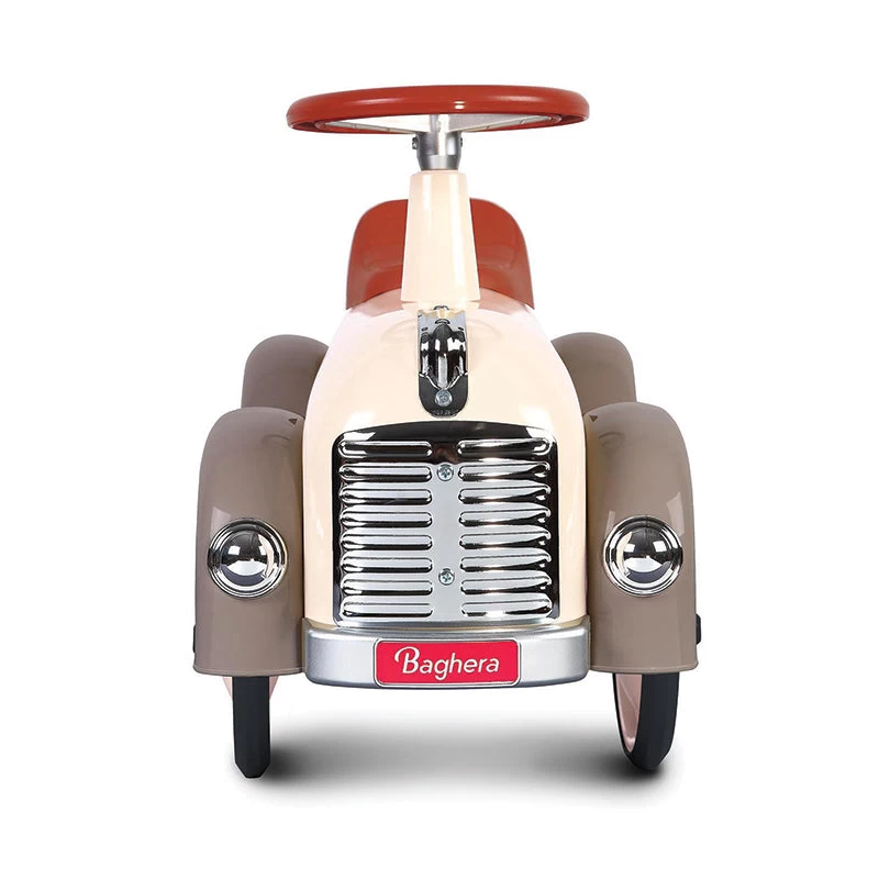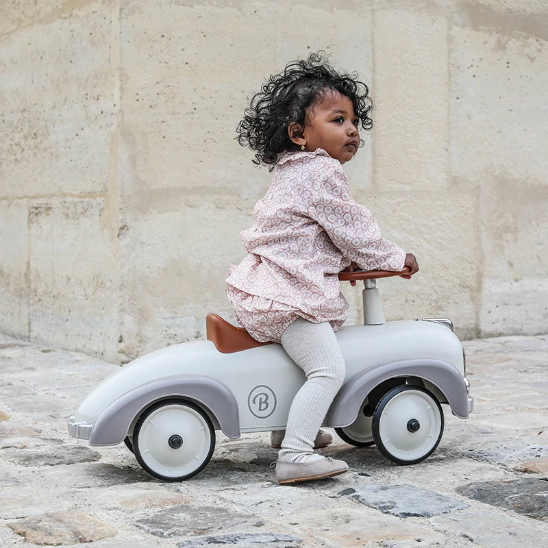 Let your child experience driving something special with this great ride on speedster! The Baghera Speedster Silk Grey is the perfect choice to park next to the cubby or swing set!! The Speedster is study and has a metal body and steering wheel and has rubber tyres for added stability and strength. It has steerable front wheels and it’s classic curves are highlighted by the moulded plastic seat, front grill and hood ornament. Requires some easy self assembly.