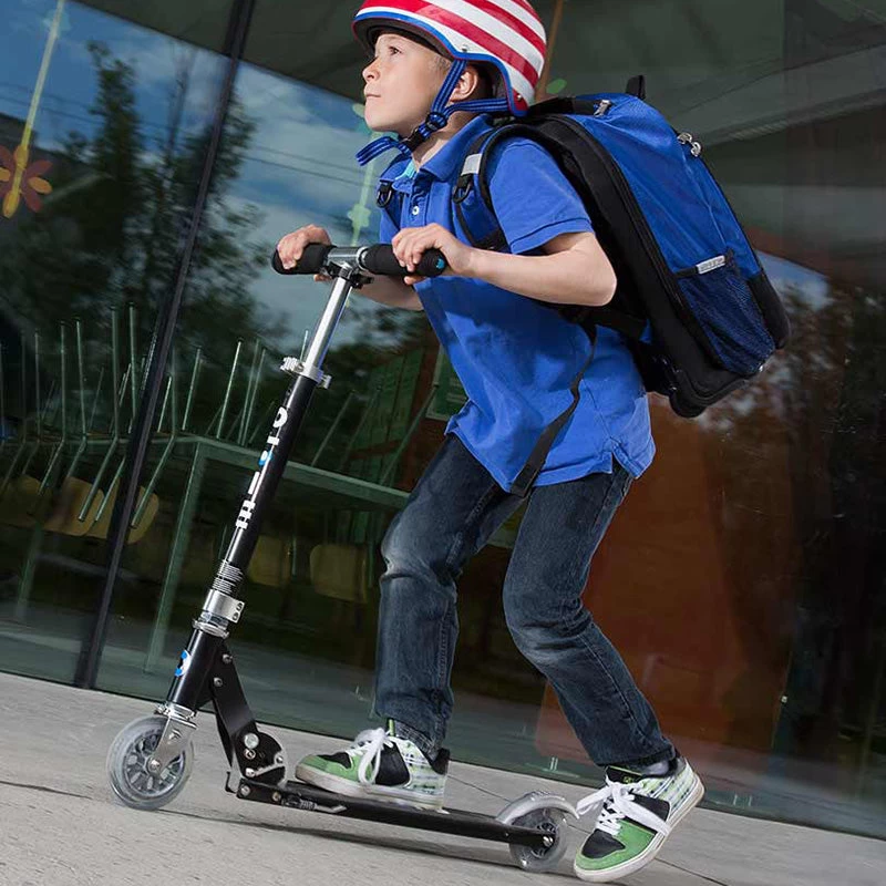 The Micro Sprite Scooter is great value and the perfect all rounder. Its sturdy, quality construction and range of colours make this kick scooter stand out from the crowd. It has an easy to use folding mechanism and it’s light weight and handy kickstand make it a practical everyday scooter which can be taken anywhere. With adjustable handlebars and high quality polyurethane wheels there’s no better way to get your child started safely scooting on two wheels.