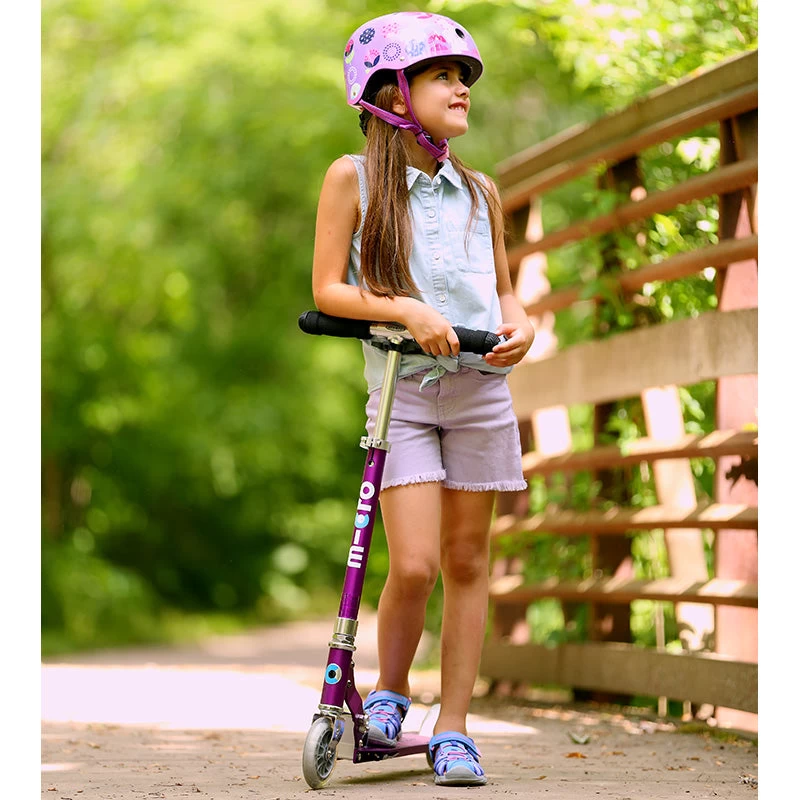 The Micro Sprite Scooter is great value and the perfect all rounder. Its sturdy, quality construction and range of colours make this kick scooter stand out from the crowd. It has an easy to use folding mechanism and it’s light weight and handy kickstand make it a practical everyday scooter which can be taken anywhere. With adjustable handlebars and high quality polyurethane wheels there’s no better way to get your child started safely scooting on two wheels.