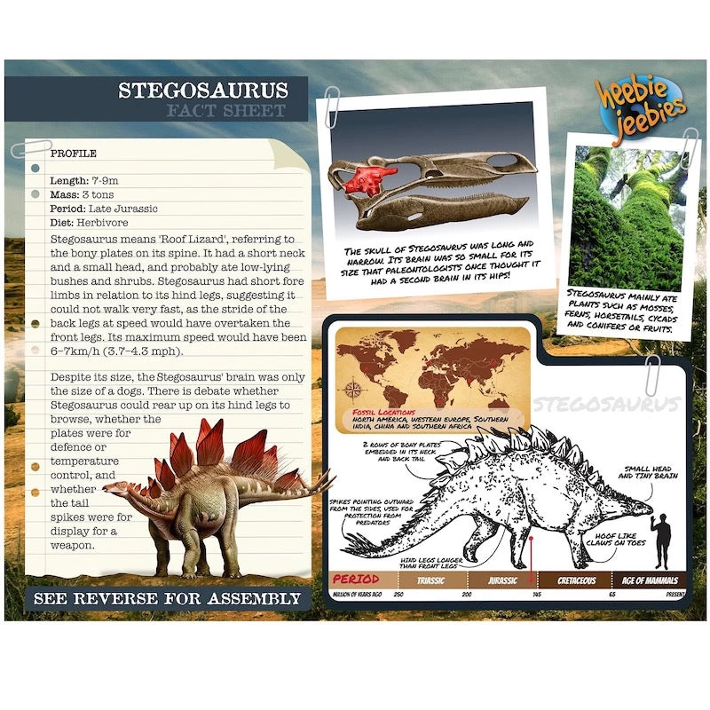 This Stegosaurus wood kit takes 30 minutes to complete and does not require glue. Instructions and sandpaper are included and the model can be painted afterwards however bold imaginations see fit! The dinosaur is 30cm long.
