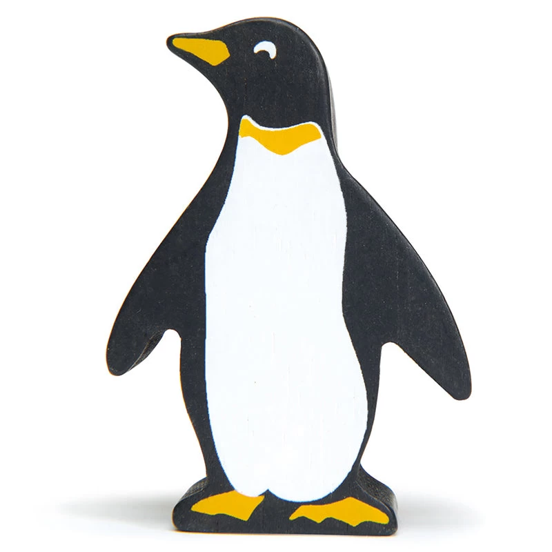 This cute little penguin is the perfect addition to any sea scene. Painted black with a white tummy and golden beak and feet. This superb wooden figurine has a smooth finish for little hands to have hours of play. All made from high quality rubber wood.