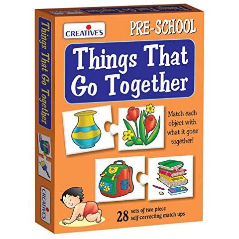 Creative’s Things That Go Together is a fantastic way to help children discover how some things go together in everyday life. Match each object with what it goes together for example flowers and vase. It will assist children with thinking independently, problem solving, hand-eye coordination and observation skills. There are 28 two piece matching puzzles.