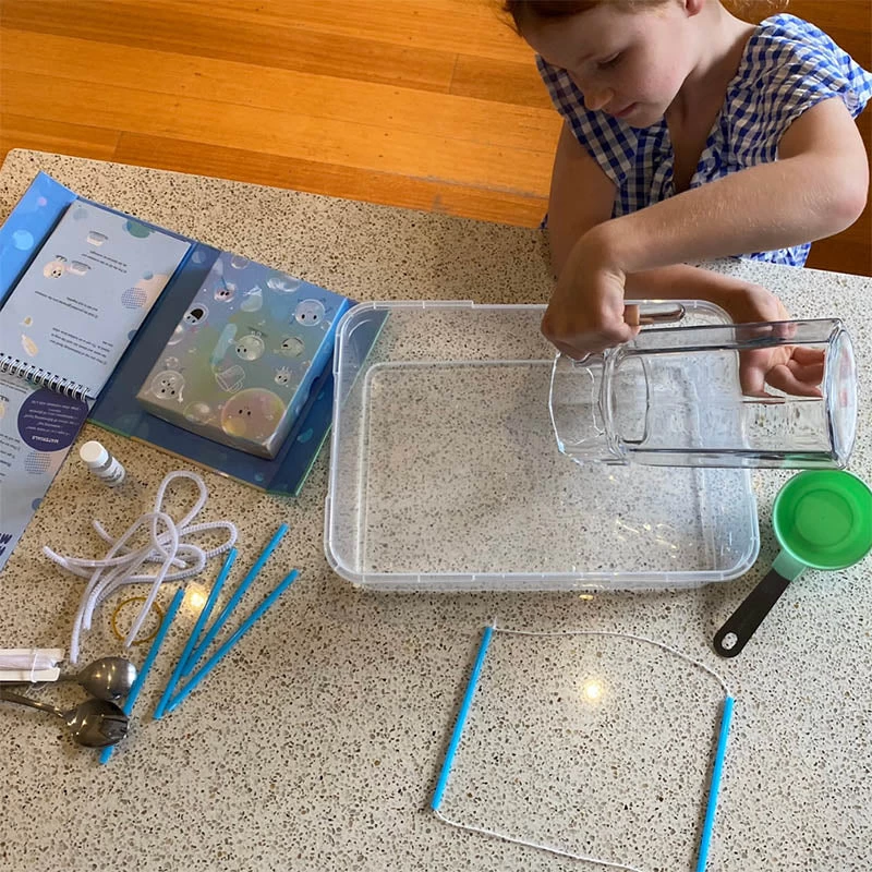 This set contains everything you need in one self contained box, with a magnetic flap to keep contents safely stored. Included is a 50 page full colour Bubble-ology guide book, 1 magic bubble fizzer, 1 x bubble mixture container, 5 x pipe cleaners, 1 x cotton string, 12 x straws, 1 x rubber band, 1 x HB pencil and 1 x Glycerine.