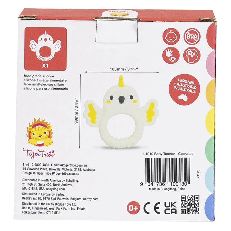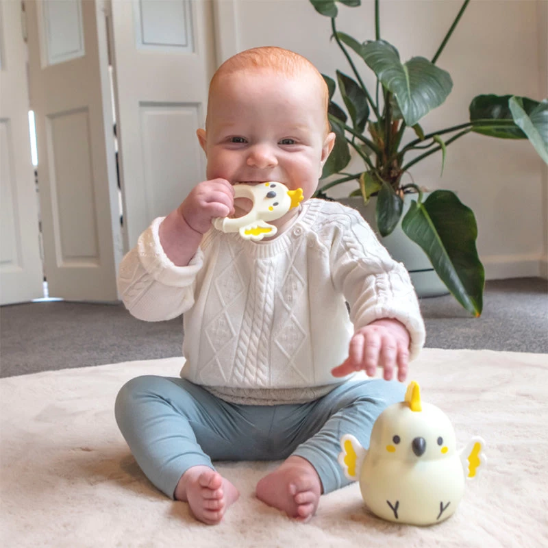 The Cockatoo Silicone teether is the ideal present for bubs. It is made from 100% food grade silicone free from all nasties. It has a range of different textures designed to soothe and comfort teething babies.