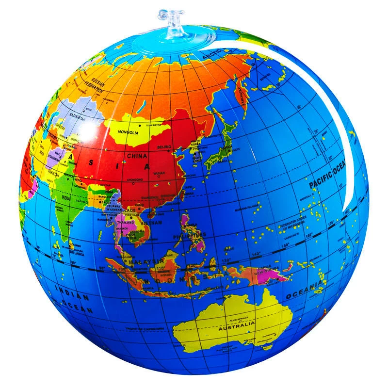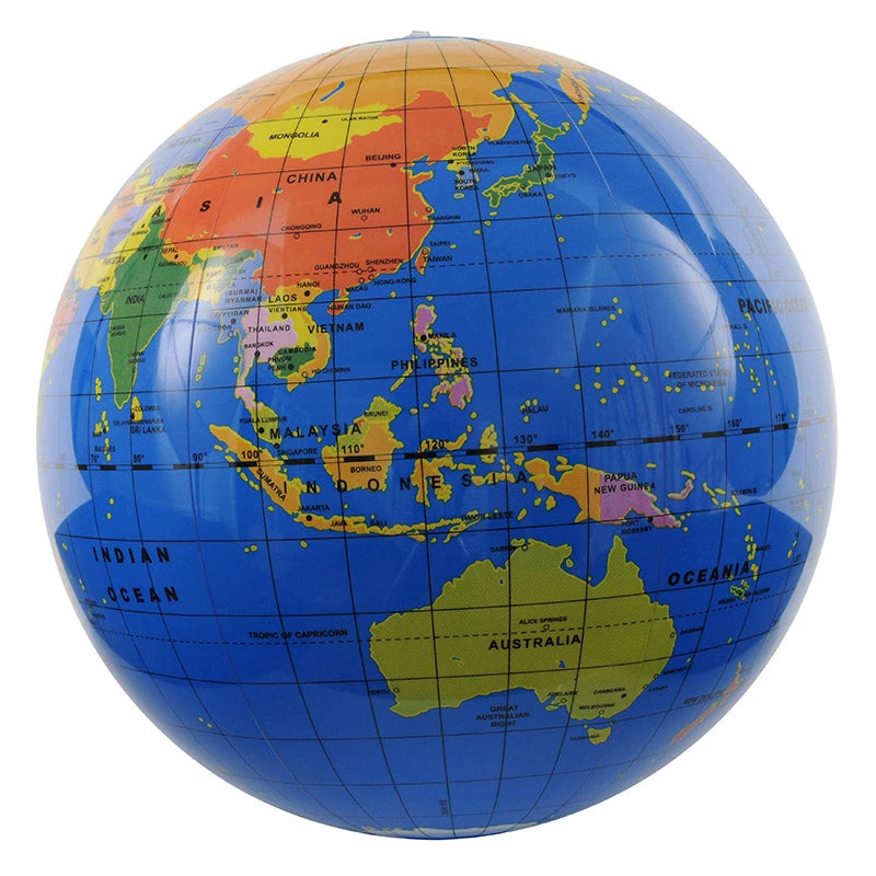 This inflatable world globe is a fun educational toy. It is beautifully decored with the countries of the world, meaning you can play catch and name the country at the same time. Use the globe indoors or outdoors, or take it to the beach or the pool! The globe has a diameter of 30cm when inflated.