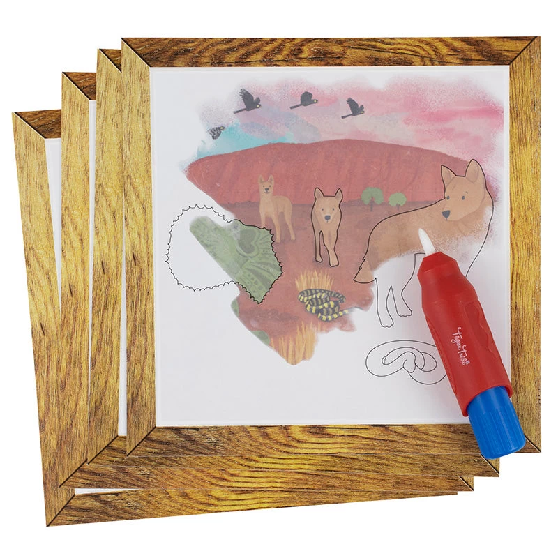 Fill your magic paintbrush with water and reveal the gorgeous Aussie Animal illustrations brought to life with every brush stroke! Perfect for travel or portable play, this set contains 4 gorgeous paintings for you to discover with your water-brush that can be revealed time and time again.