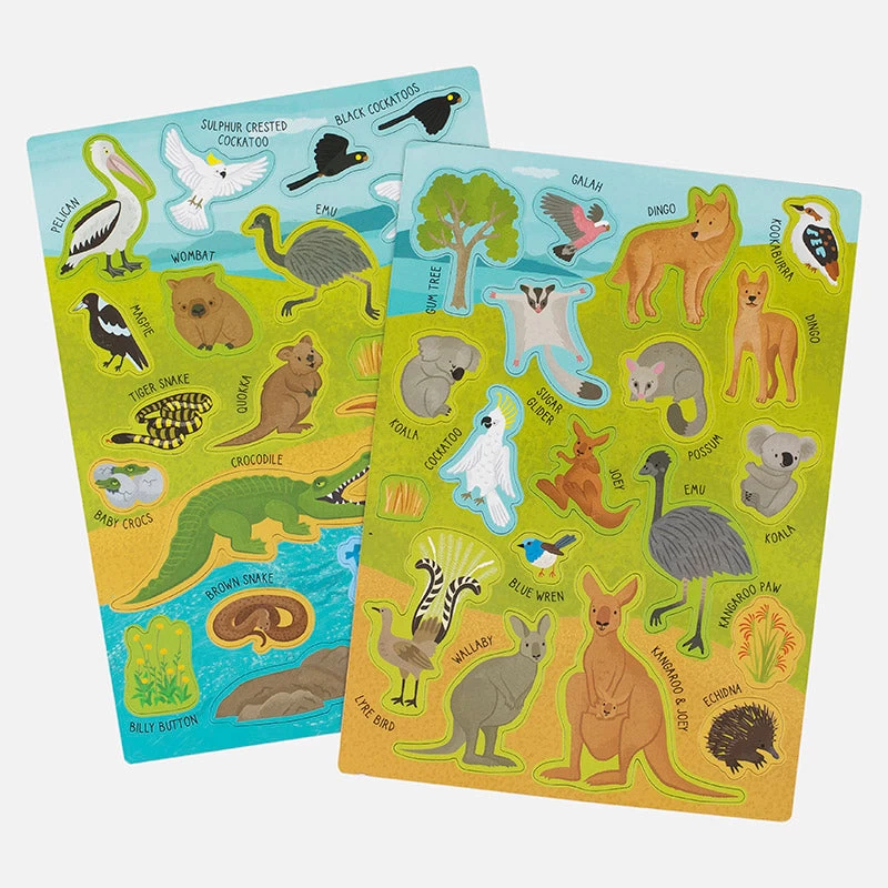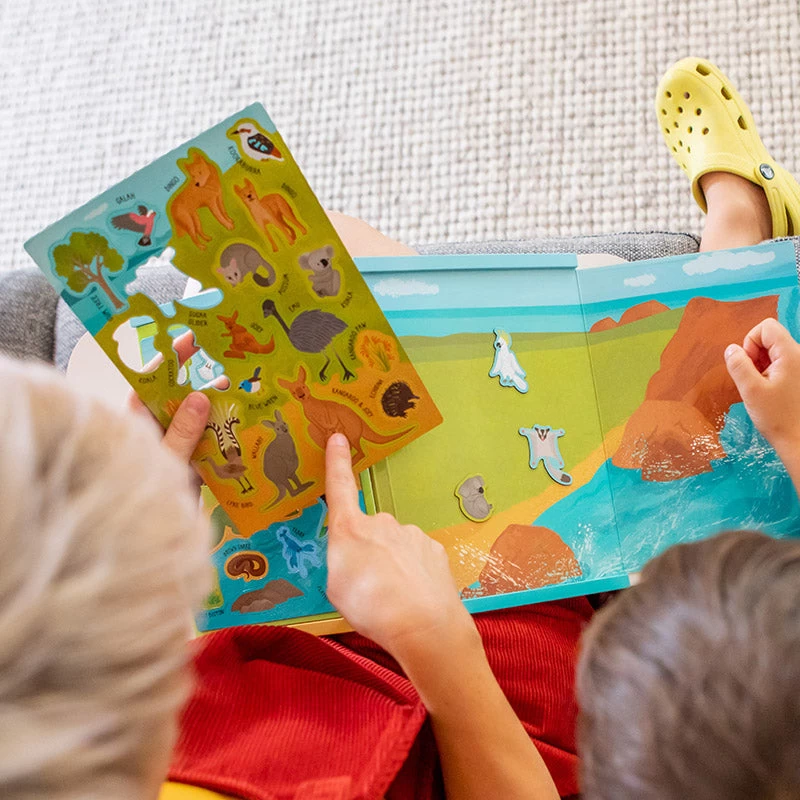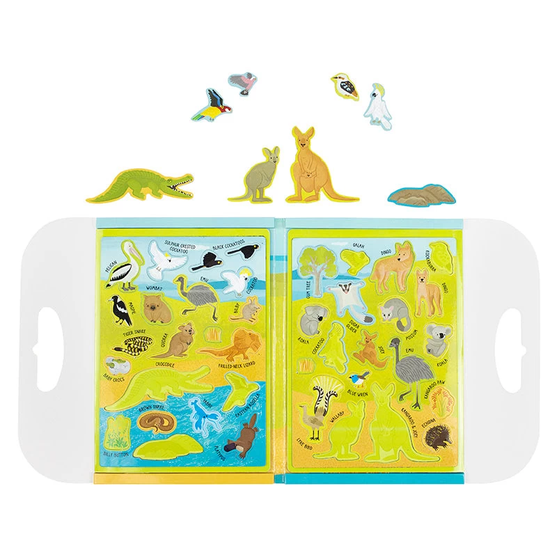 Learn about all the different Aussie Animals! There’s so much fun to be had and more room than ever to play with a fold-out double-sided play scene. The Magna Carry playbooks develop imagination, promote independent play and hone fine motor skills. The mobile kit includes a fold-out double-sided play scene and two sheets of press-out magnets.