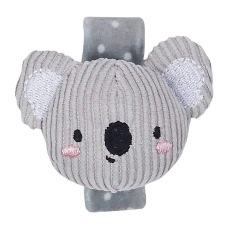 The koala wrist rattle fastens around your little ones arm with velco. As they move their arm around it makes a rattle sound keeping baby engaged.