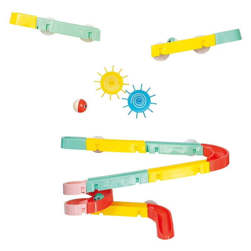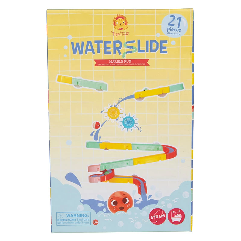 Make bath time lots of fun with this Waterslide Marble Run! This wet and wild marble run is all about interactive water explorations. From vertical drops, spinning cogs to vortex bends your little one will be amazed. There are 21 separate pieces (including four funny faced plastic marbles) that are designed to work together so kids can build their own waterslide, possibilities are endless. There are suction caps attached to sections which can stick to the side of the bath or bathroom tiles.