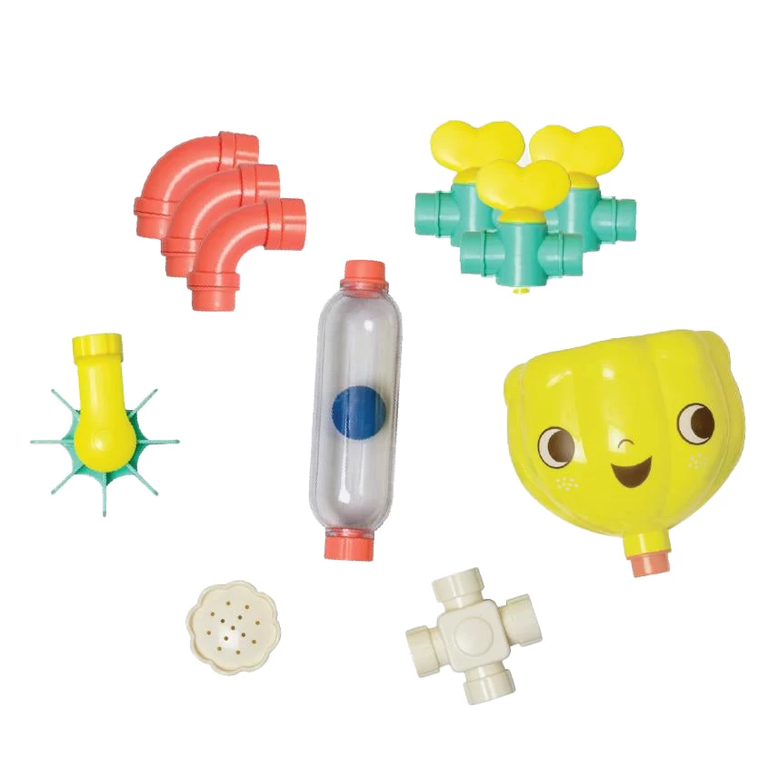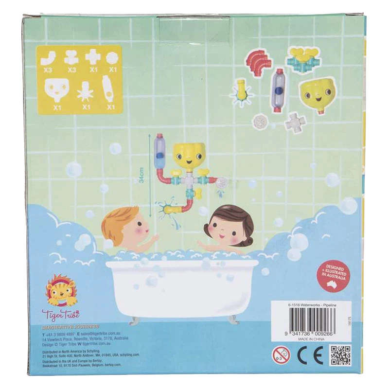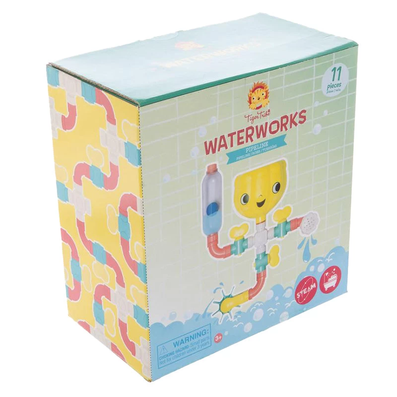 Make bath time lots of fun with Waterworks Pipeline! Simply pour water through the top of the head and watch on as the water flows through the pipes. You can turn the valves on and off to stop and start the flow. The pieces are interchangeable so swap them around to see where the water will flow next.