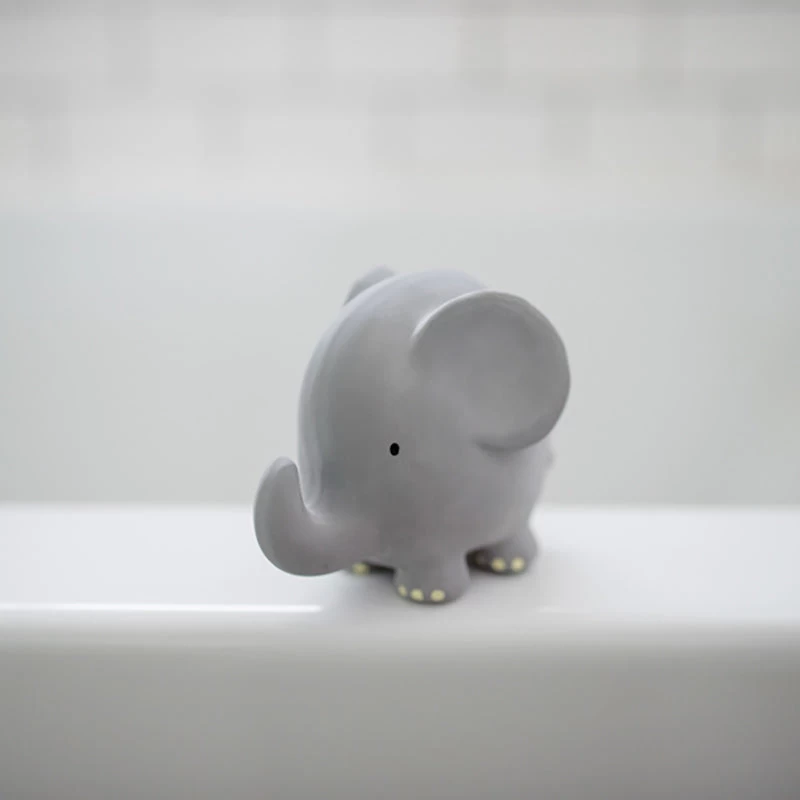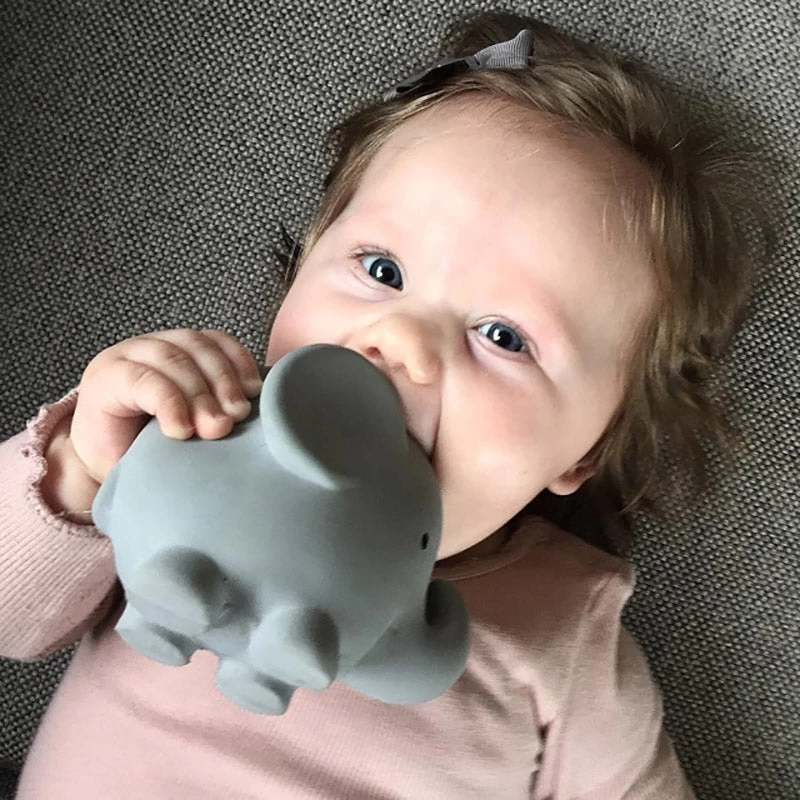 This elephant from Tikiri is made of light grey natural rubber and makes a fantastic rattle and teething toy.
