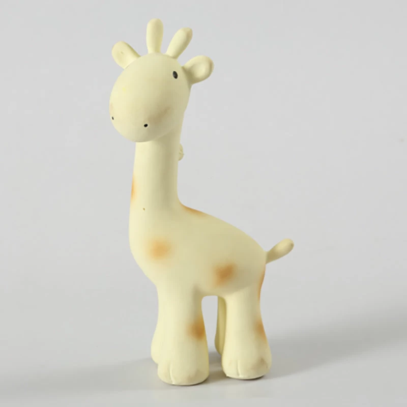 Standing tall with curious ears this yellow giraffe from Tikiri is a treat for the senses. Made of yellow natural rubber and marked with classic dark yellow spots this cute little creature is sure to become a favourite.