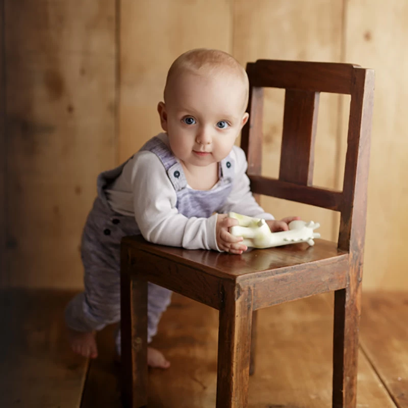 Well hidden inside the body of the giraffe is a small bell which will provide fundamental lessons in cause and effect while aiding in the development of fine motor skills. The giraffe is 16cm tall, 8cm long and 5cm wide.