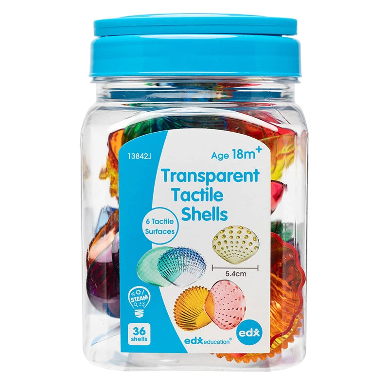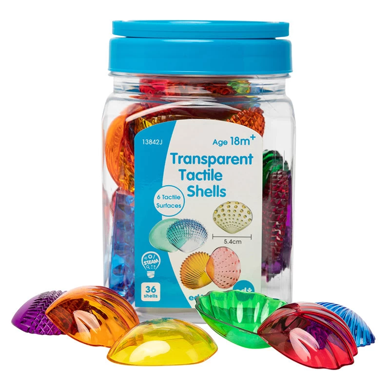 The Transparent Tactile Shells from Edx Education offers sensory experiences – sight touch and sound. The set includes 36 shells in 6 tactile surfaces and 6 colours and an activity guide.