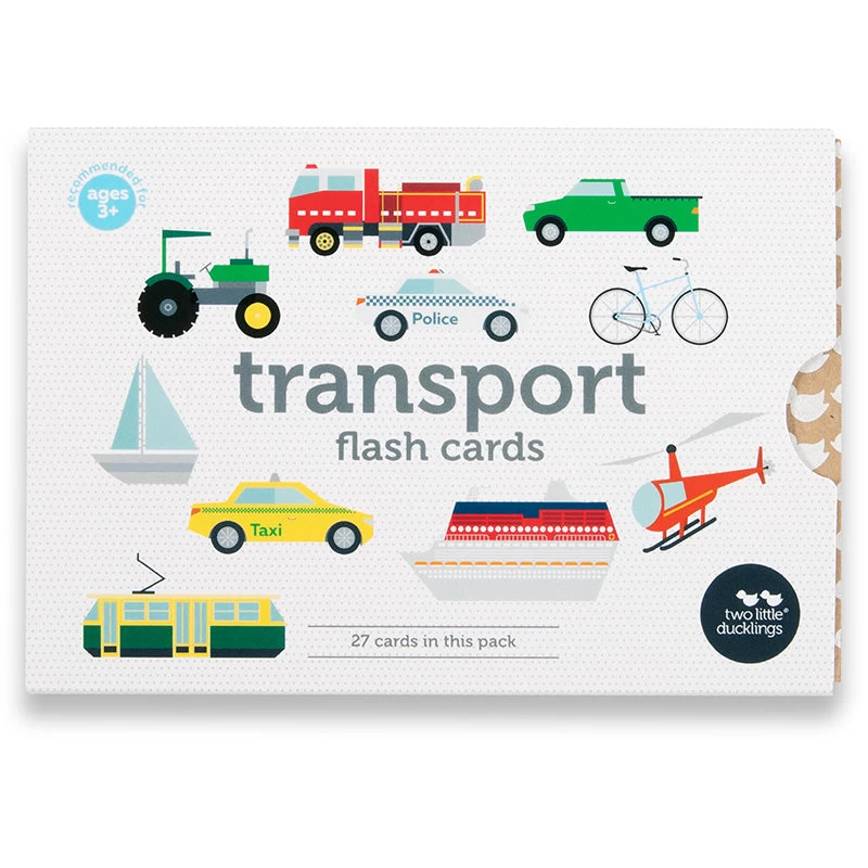 Learning about different transport types can be fun with the easy to read and brightly coloured illustrated flash cards from Two Little Ducklings. Each card measures 10cm x 15cm.
