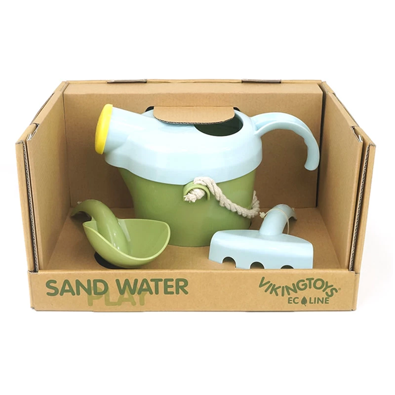 The Eco Watering Can Set from Viking Toys is an eco friendly and sustainable toy made from sugar cane. The set is perfect for playing in the garden, at the beach or even in the bath. The set includes a watering can (22cm x 15cm x 13cm), shovel (18cm x 8cm x 4.5cm) and rake (14cm x 10cm x 5.5cm).