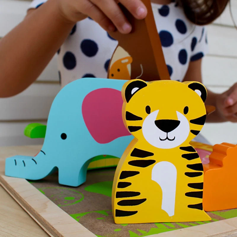 This simple toy can be played with in many different ways and also offers an opportunity for children to learn to identify and name the wild animals.