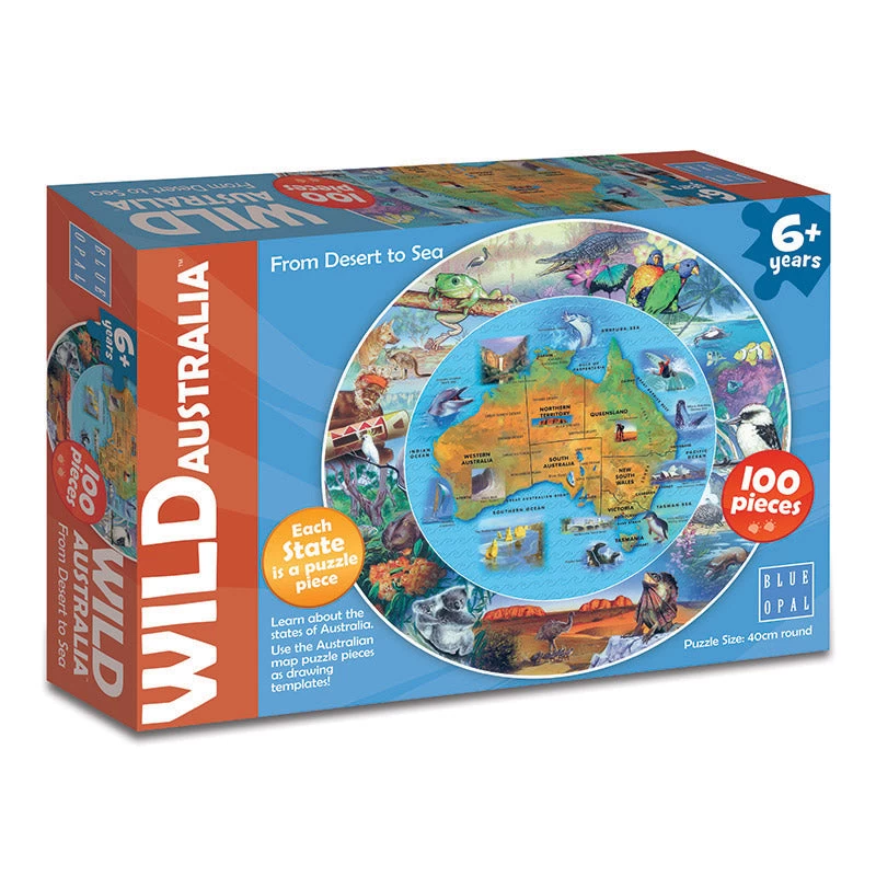 Artist Greg Gillespie has created this wonderful rendering of iconic flora and fauna of Australia around an exciting illustrated map. In this 100 piece jigsaw each state is represented by its own shaped piece, 7 in all. The oceans consist of 23 larger jigsaw pieces and the surrounding artwork contains a further 70 pieces.