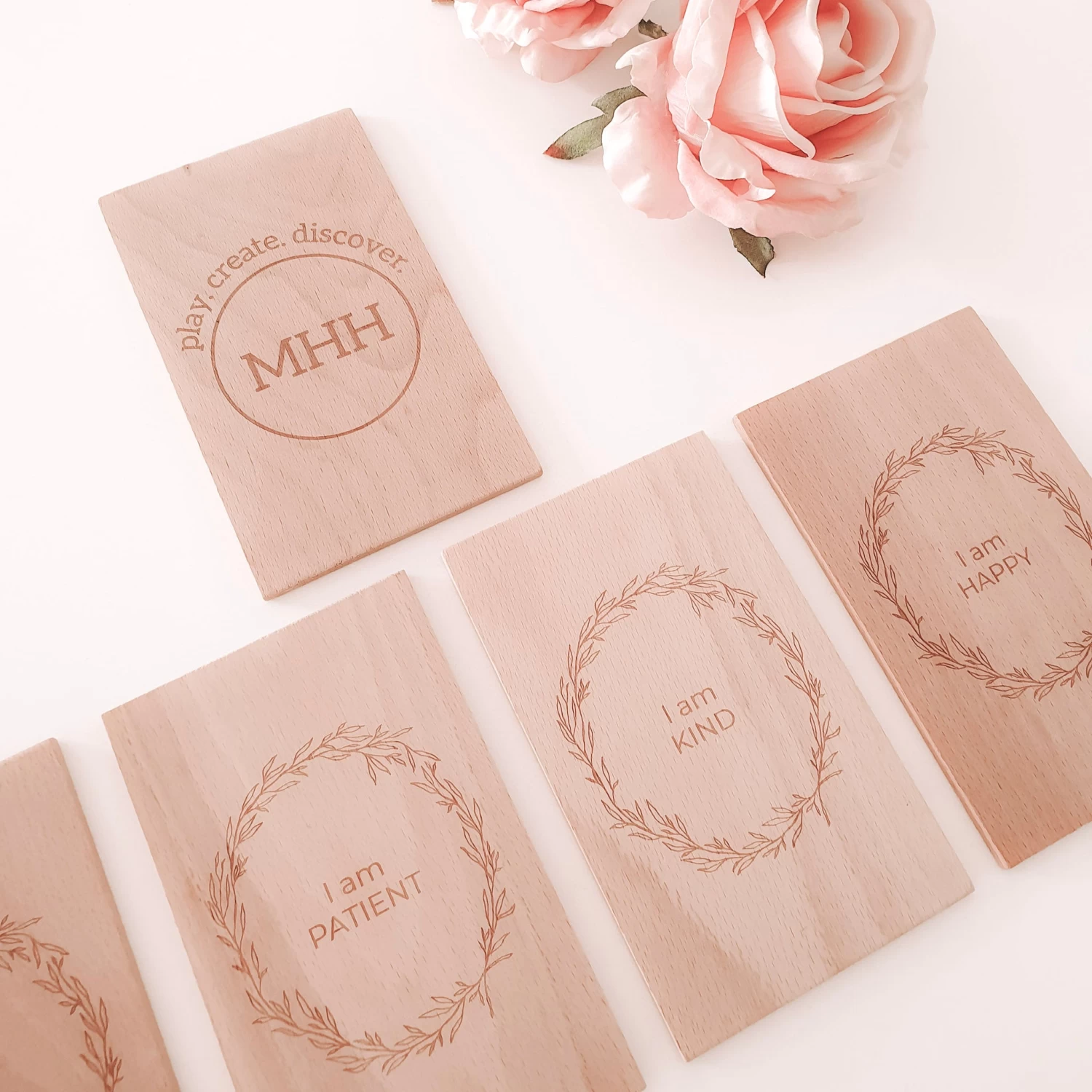 These Wooden Affirmation Cards from My Happy Helpers are a wonderful way to develop your little one’s confidence. The set includes 12 wooden blocks with the following affirmations: I am Brave, I am Kind, I am Me, I am Patient, I am Healthy, I am Clever, I am Confident, I am Happy, I am Thankful, I am Calm, I am Safe and I am Loved. Each card is hand made and engraved, not stamped. Each card is 9cm x 14.5cm x 0.5cm.