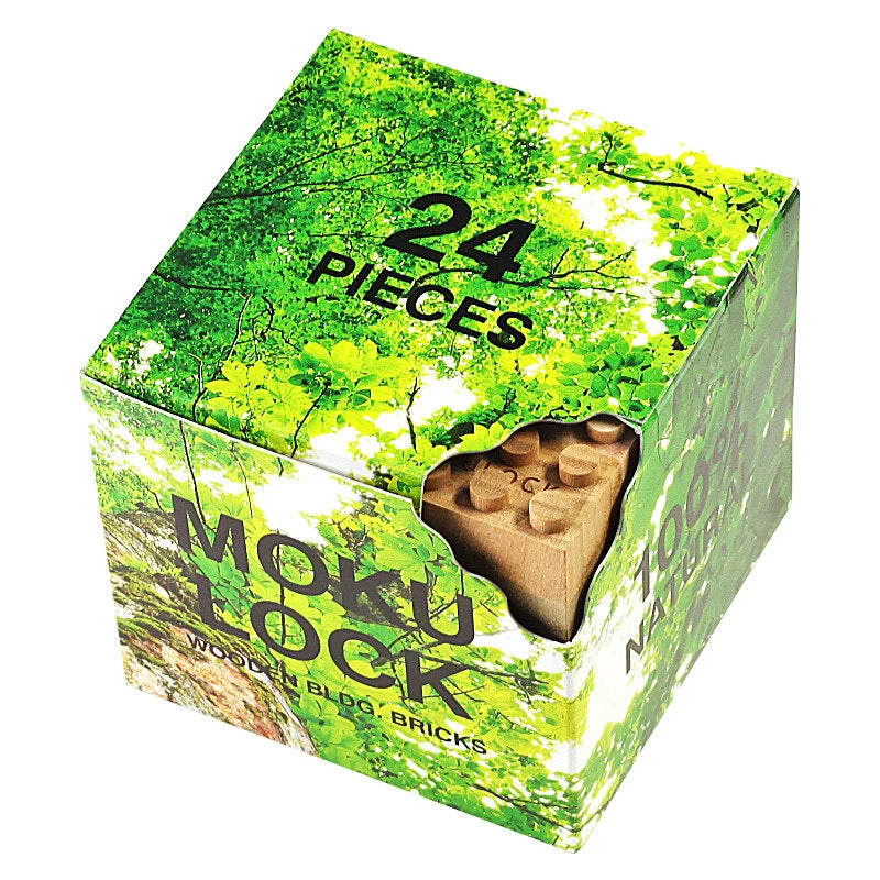 Set includes 24 fun interlocking building bricks. No oils, chemicals, paints, or glue are used – just beautiful, eco-friendly wood. Explore, discover and create with endless possibilities. Compatible with all other Mokulock products that we carry. Individual Block size: 16mm x 32mm x 13mm (8 ‘plugs’ on each brick).