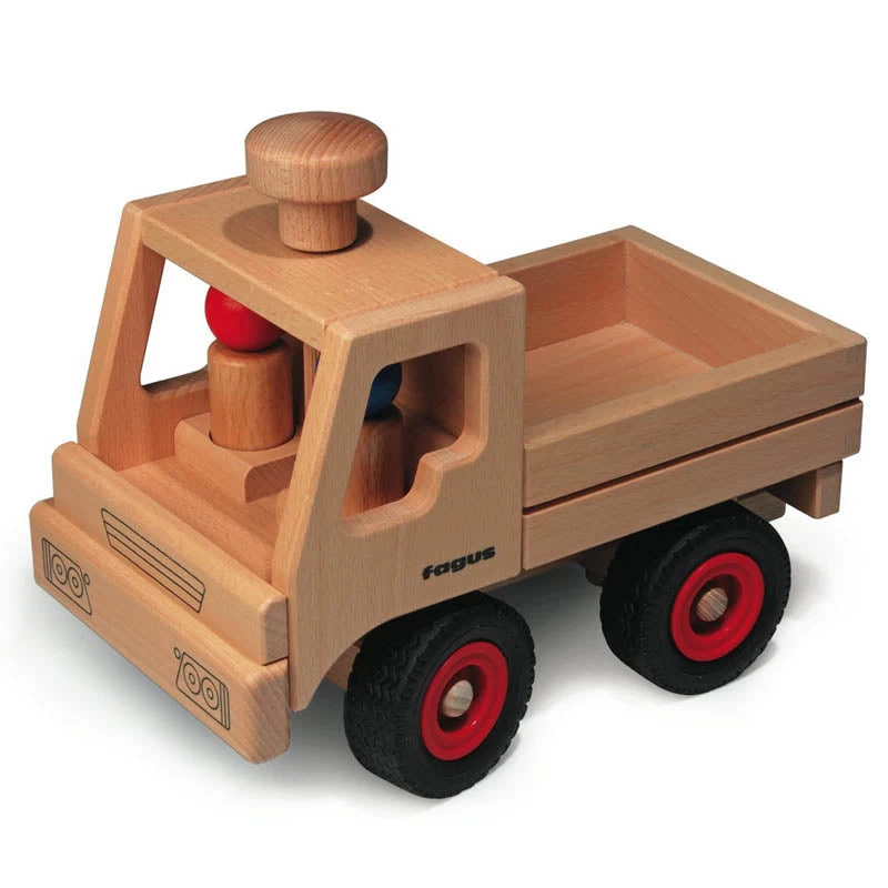 Fagus make superb quality hand-made toys that are timeless and traditional. Their wooden vehicles are made from beech wood and are interlocked, dowelled and glued together with no staples or screws. The colourless varnish retains the structure and warmth of the beech wood. These are special toys with a special story – handmade by artisans in a workshop for the disabled in Germany. This truck is fully steerable with hard rubber wheels (dimensions 18x13x25cm). Age guide: from 3 years – although if you remove the peg drivers younger children can also enjoy this truck.